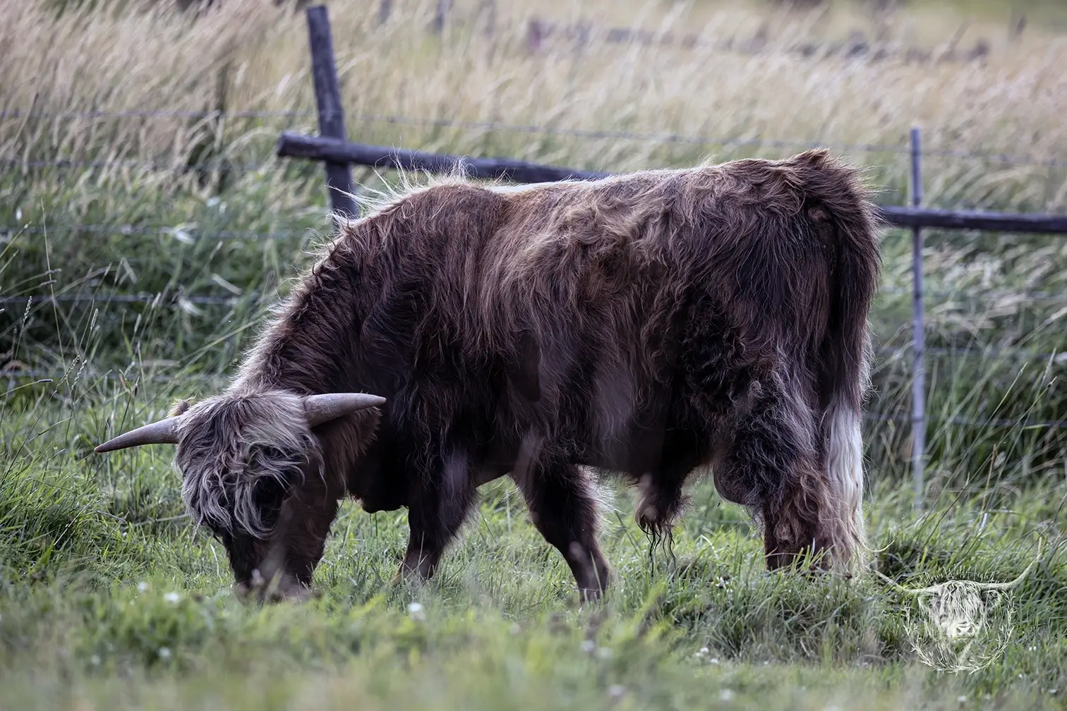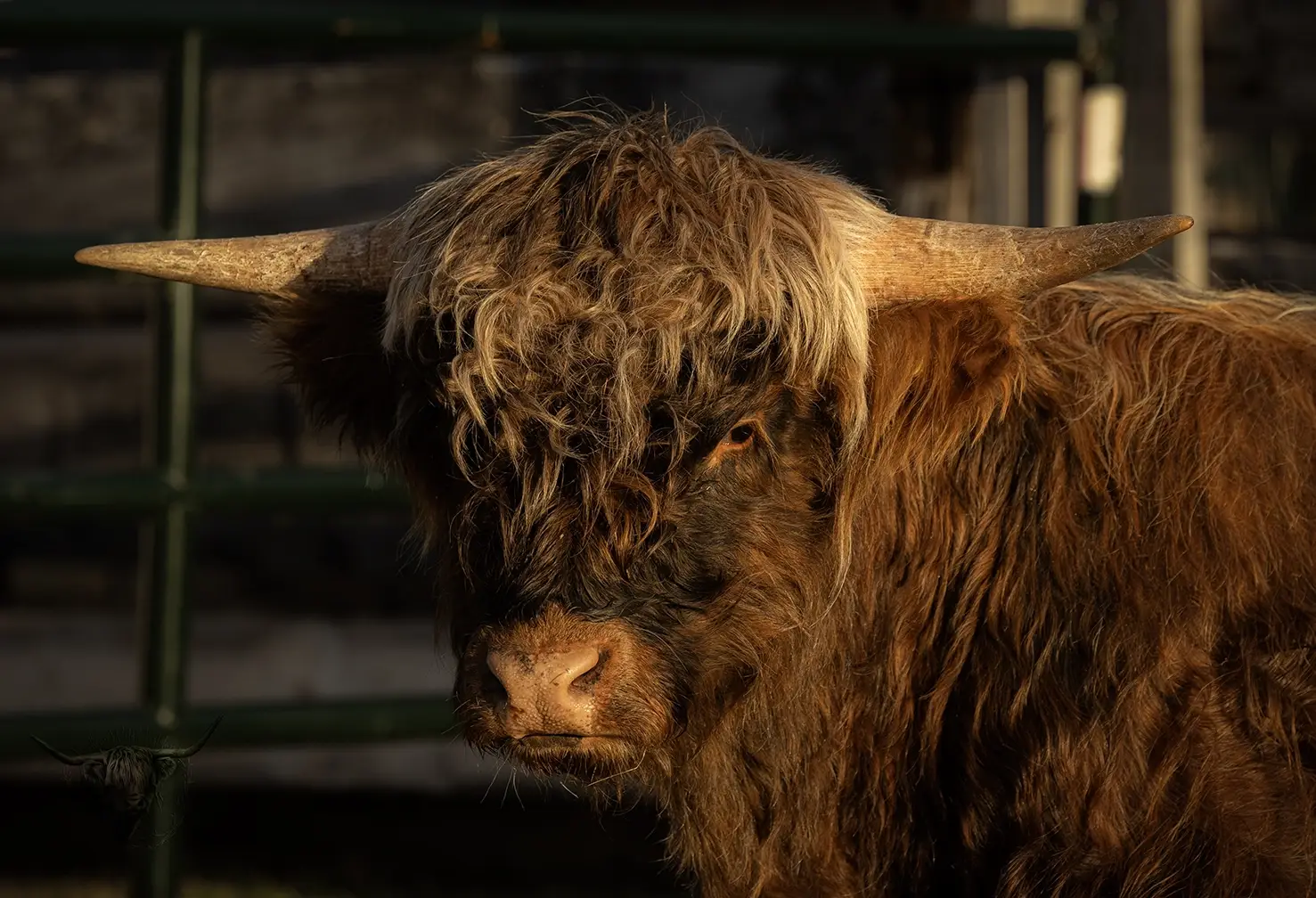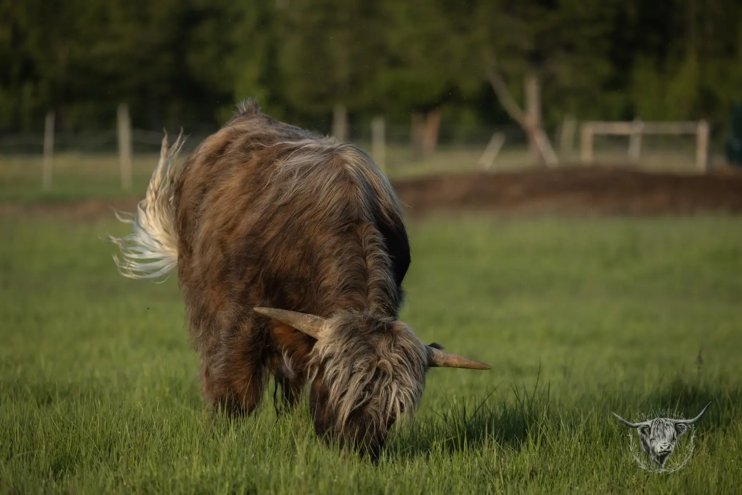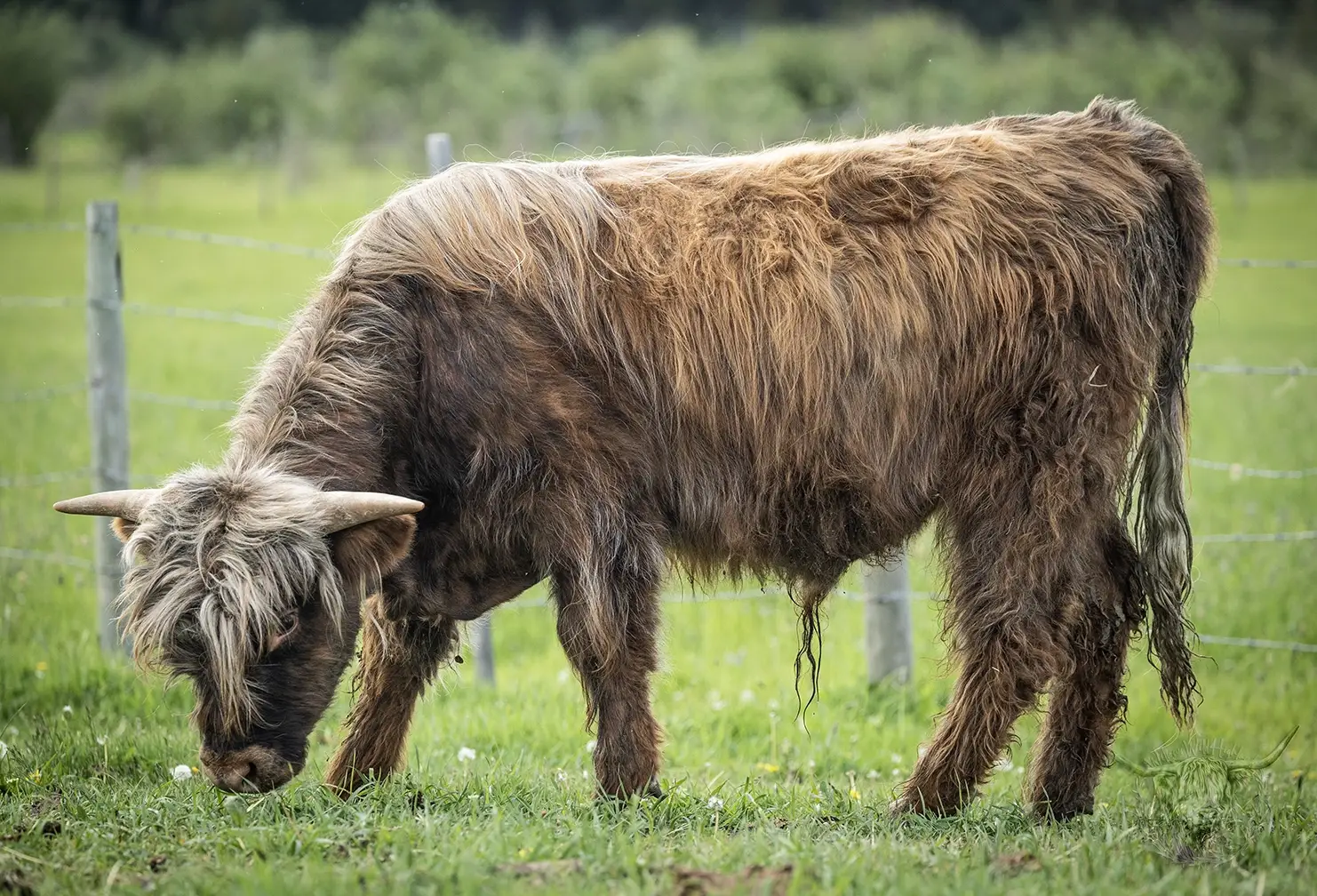 Michael joined the fold winter of 2024. He is a very handsome frosted yellow brindle. He has a solid build and a disposition to match, always ready for a good scratch and an even better combing. He has a couple of calves on the ground and we’re impressed!